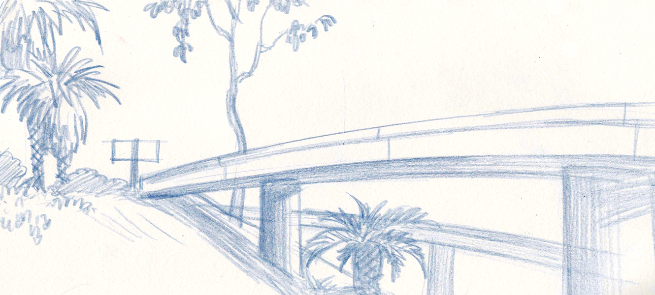 Timothée de Place was born in Paris, France and moved to Los Angeles with his family at the age of five. Living in this bustling city, he has found great inspiration in the urban landscape around him, specifically fascinated by the impressive systems of freeways and byways. They are the metaphorical veins of this on-the-go city. The interesting part is how the man-made structures of freeways interact with the natural world surrounding them. There is a beauty there that Timothée brings to light on canvas.